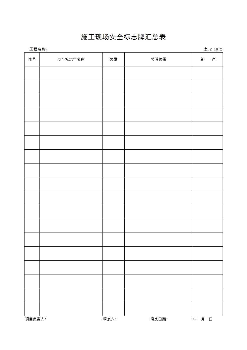 表格名称:表2-18-2 施工现场安全标志牌汇总表
