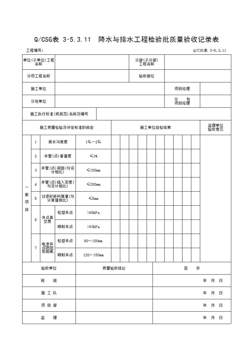 QCSG 表 3-5.3.11 降水与排水工程检验批质量验收记录表