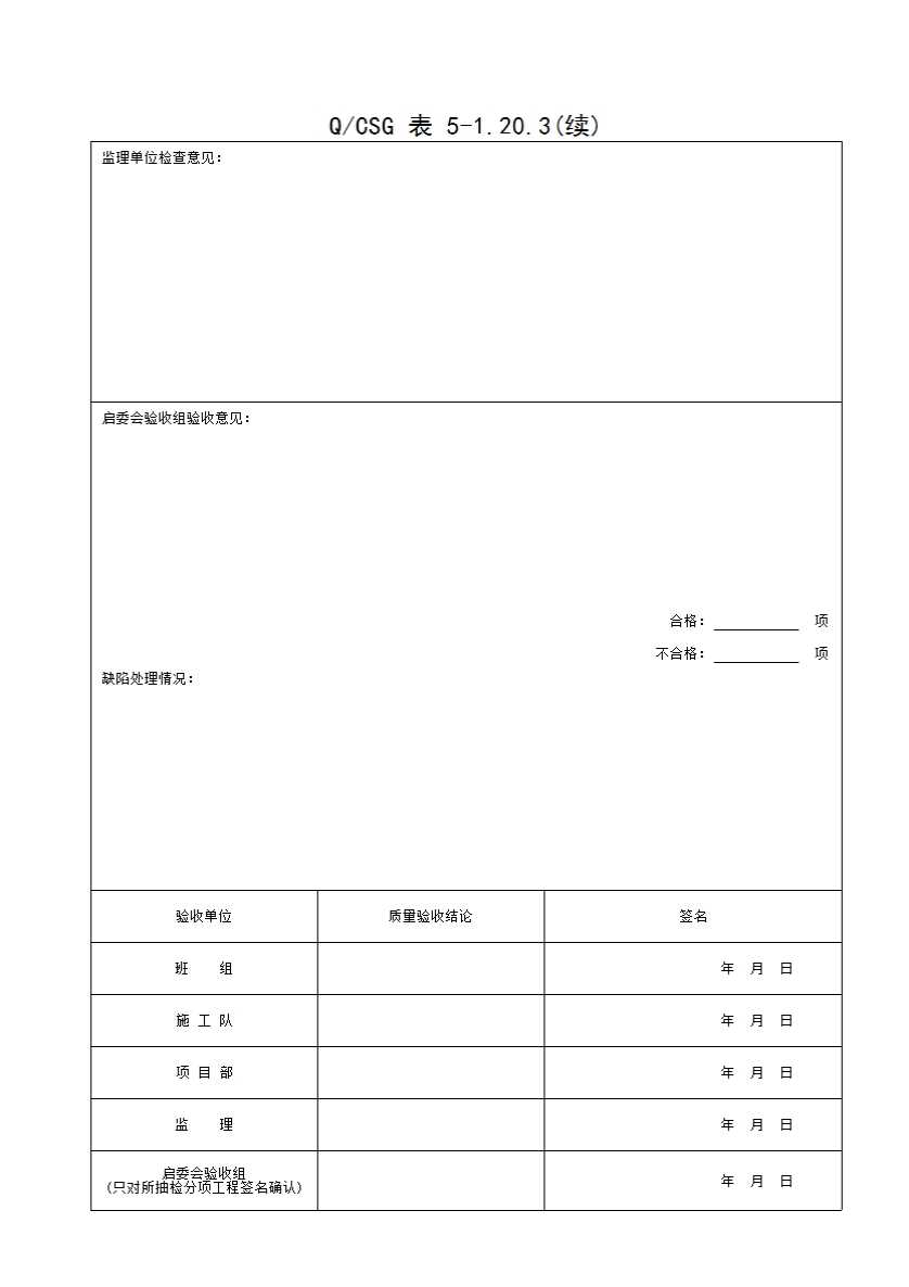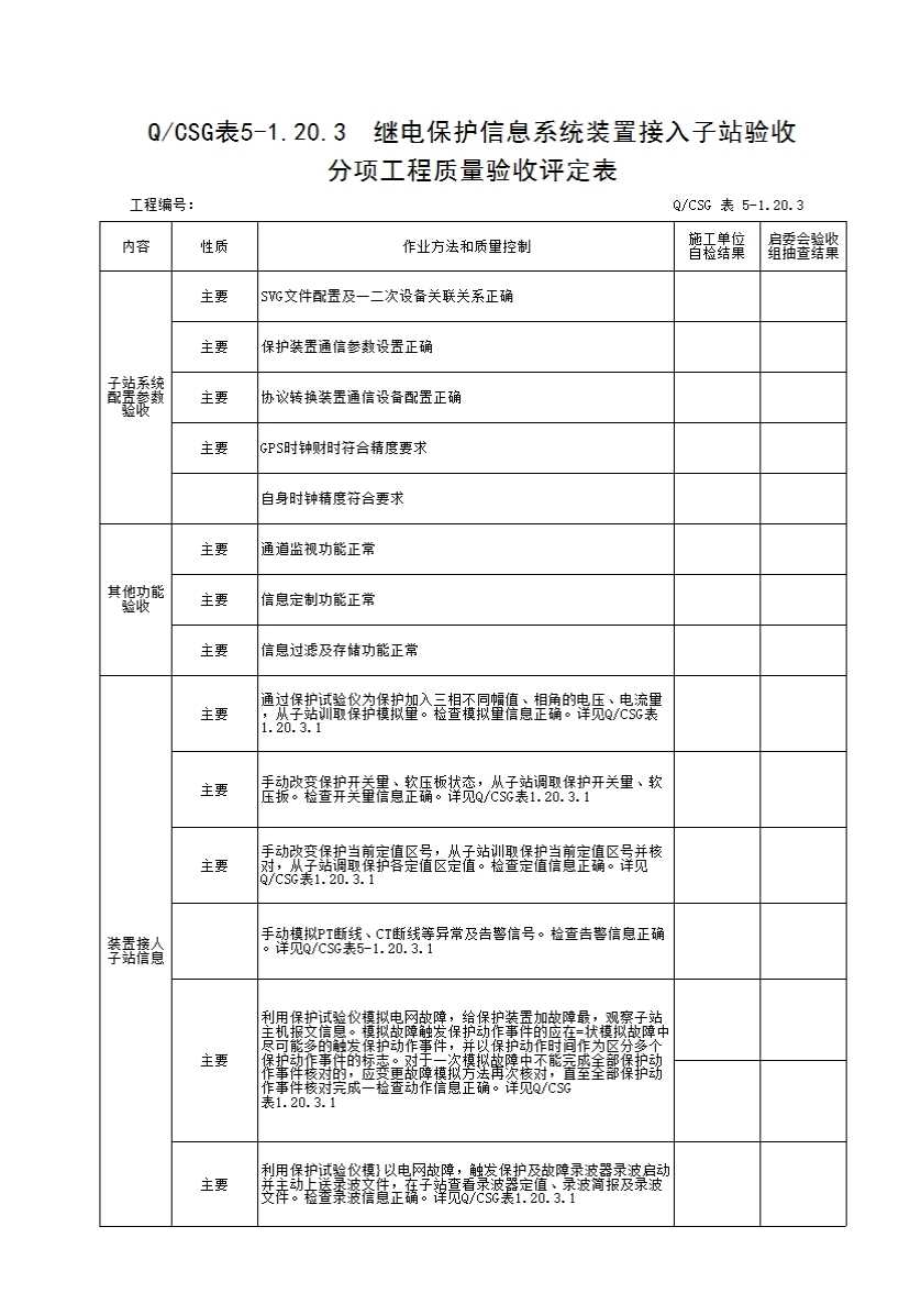 QCSG 表 5-1.20.3 继电保护信息系统装置接入子站验收 分项工程质量验收评定表