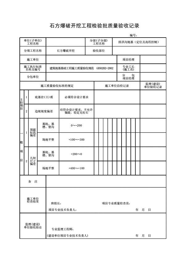 表格名称:石方爆破开挖工程检验批质量验收记录