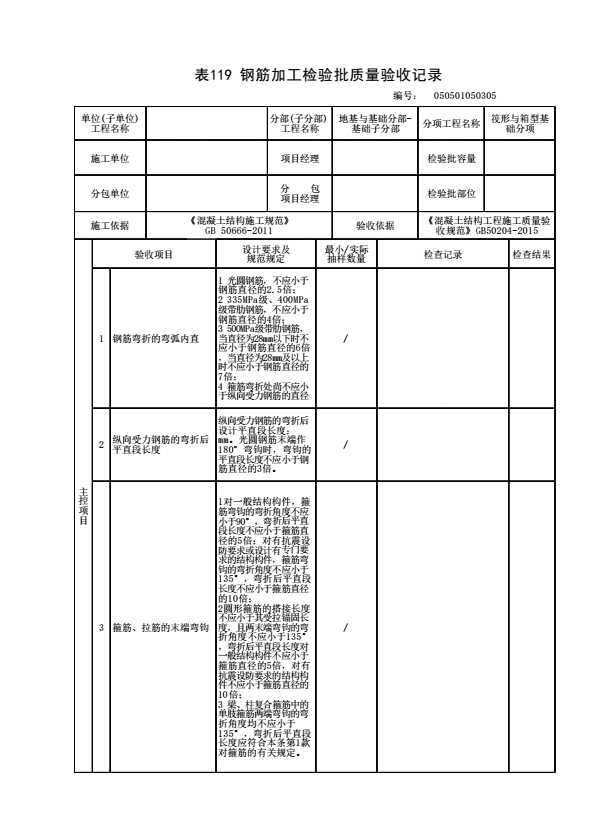 表格名称:050501050305 钢筋加工检验批质量验收记录
