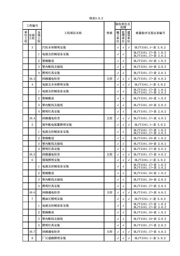 表格名称:表3.0.2 发电工程施工质量验收范围划分表