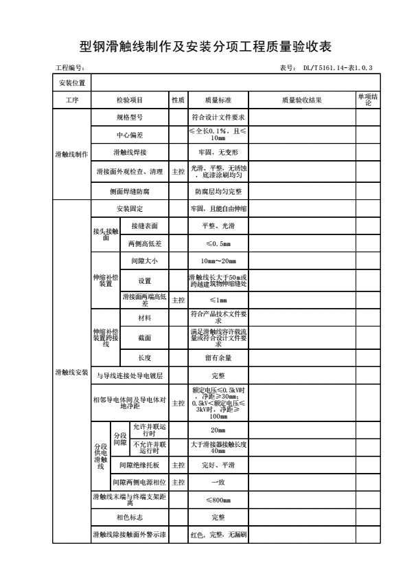 表格名称:表1.0.3 型钢滑触线支架制作及安装分项工程质量验收表