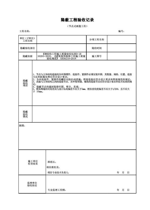 表格名称:隐蔽工程验收记录(节点式雨篷工程)