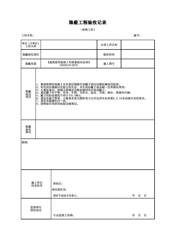 表格名称:隐蔽工程验收记录(裱糊工程)