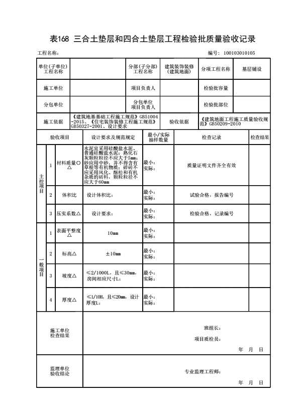 表格名称:100103010105 三合土垫层和四合土垫层工程检验批质量验收记录