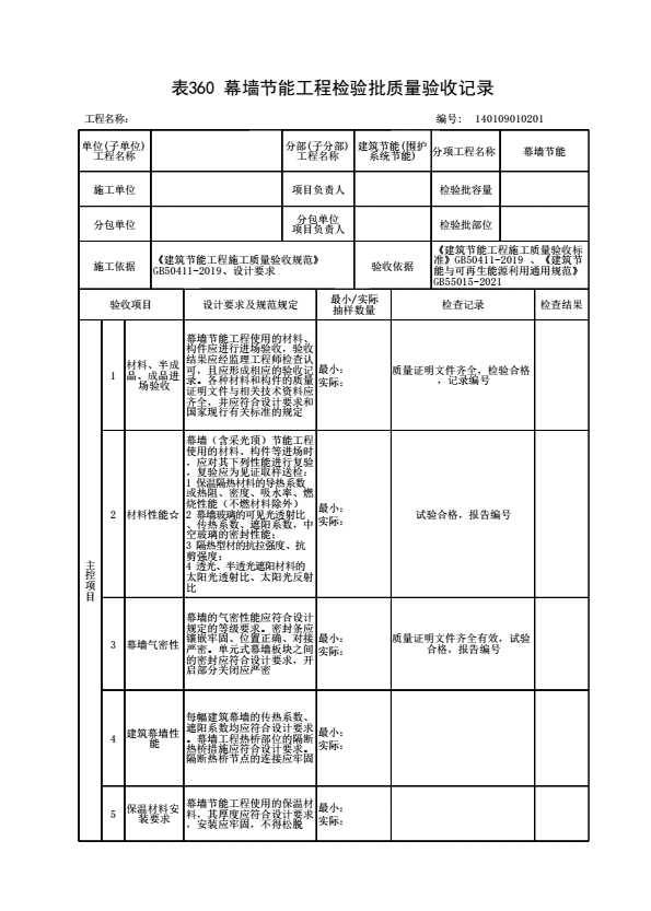 表格名称:140109010201 幕墙节能工程检验批质量验收记录