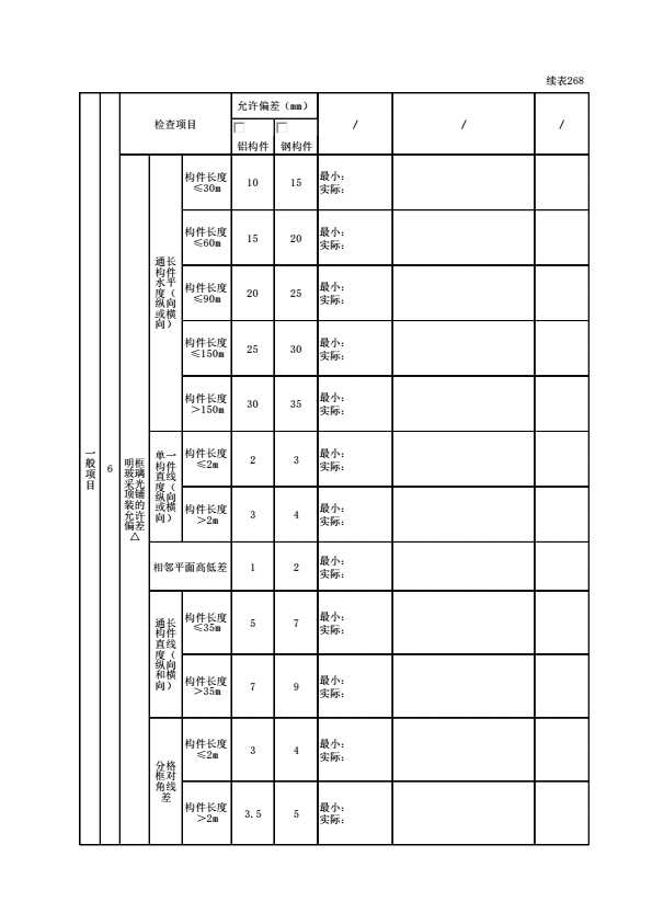 表格名称:150304040401 玻璃采光顶铺装工程检验批质量验收记录