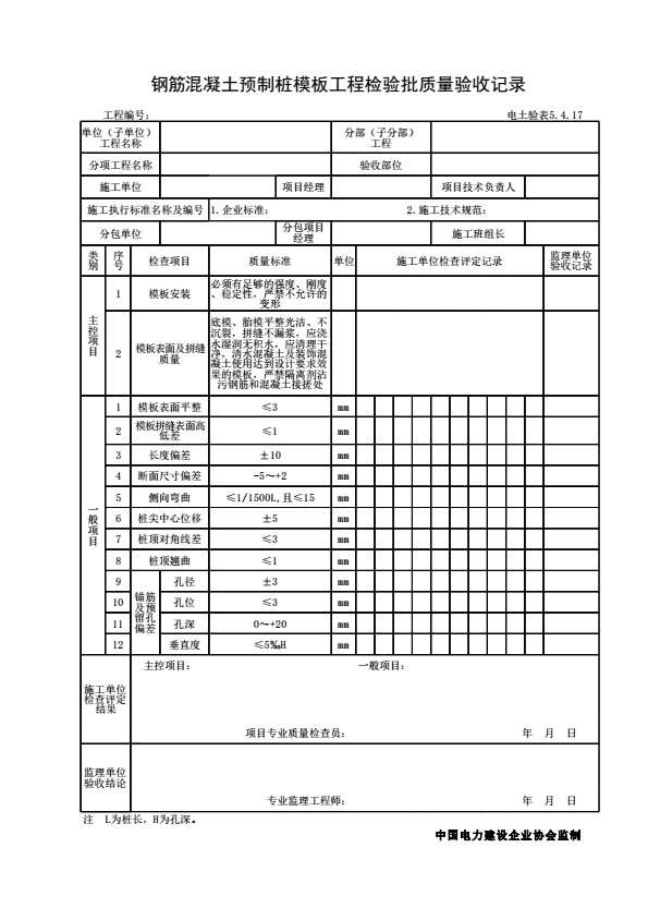 电力建设土建工程施工、试验及验收标准表式