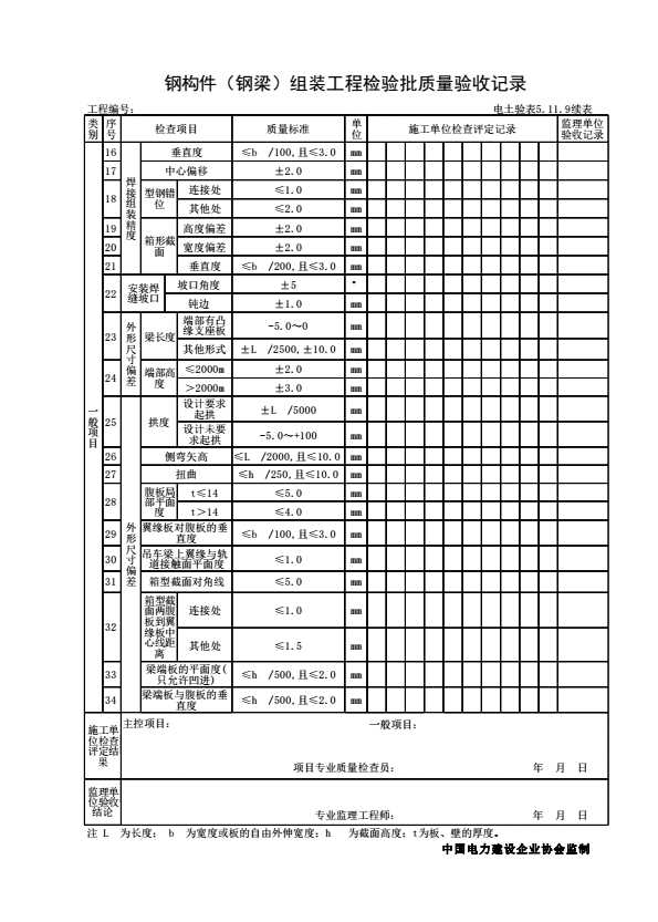 表格名称:电土验表5.11.9 钢构件(钢梁)组装工程检验批质量验收记录