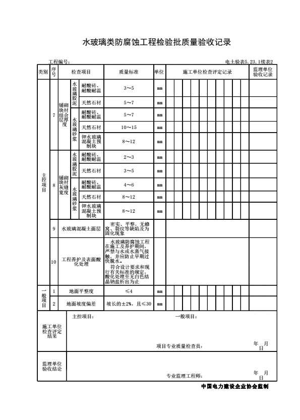 表格名称:电土验表5.23.1 水玻璃类防腐蚀工程检验批质量验收记录