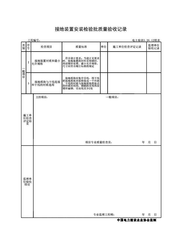 表格名称:电土验表5.26.12 接地装置安装检验批质量验收记录
