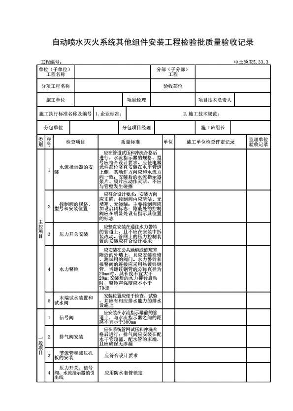 表格名称:电土验表5.33.3 自动喷水灭火系统其他组件安装工程检验批质量验收记录