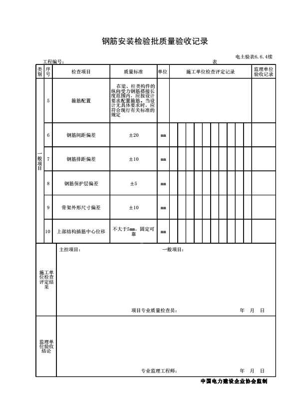 表格名称:电土验表6.6.4 钢筋安装检验批质量验收记录