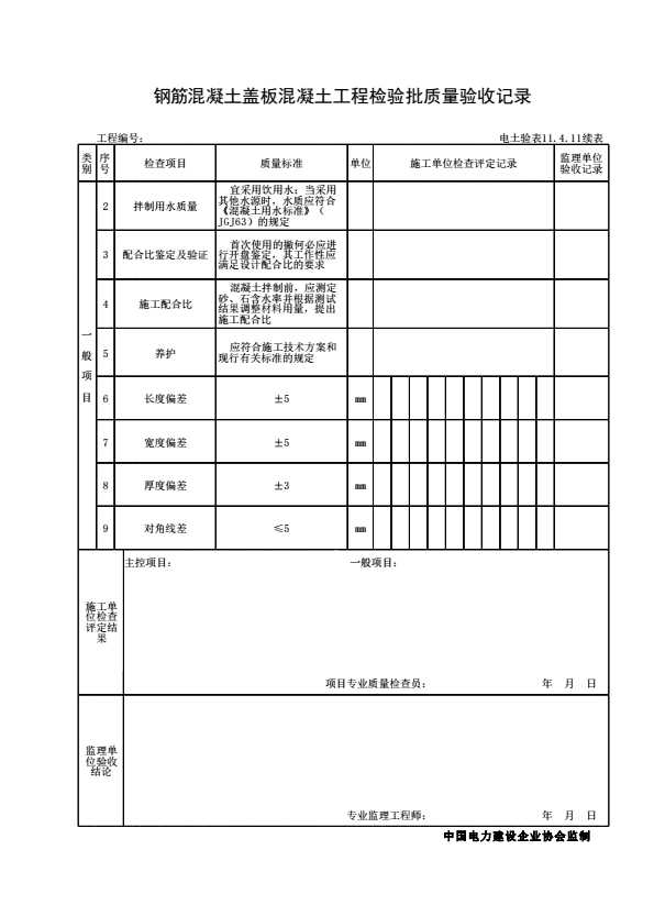 表格名称:电土验表11.4.11 钢筋混凝土盖板混凝土工程检验批质量验收记录