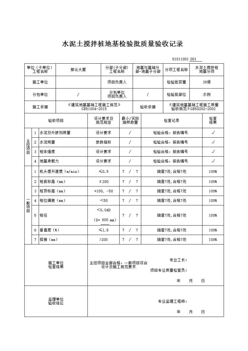 01011001_水泥土搅拌桩地基检验批质量验收记录