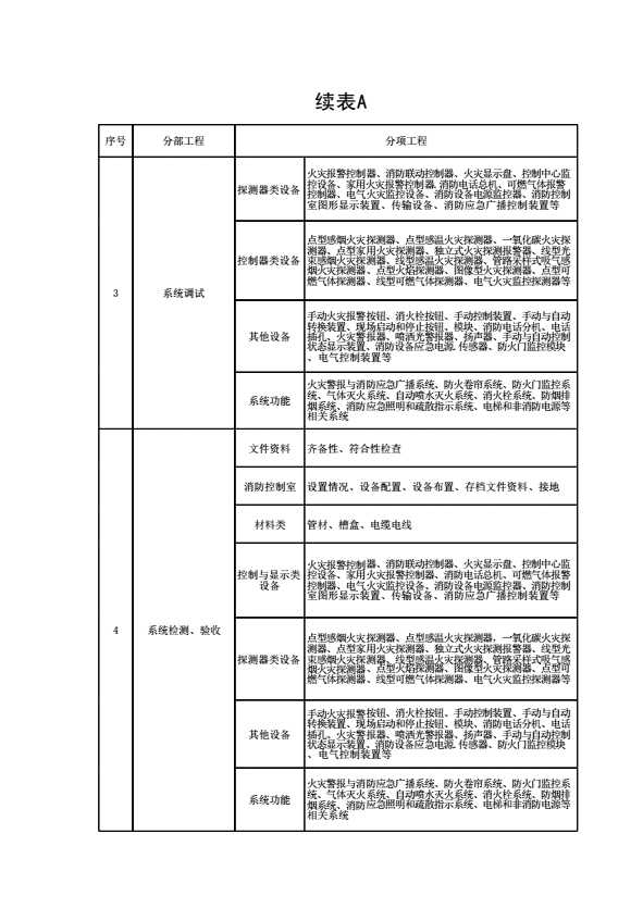 表格名称:表A火灾自动报警系统分部、分项工程划分