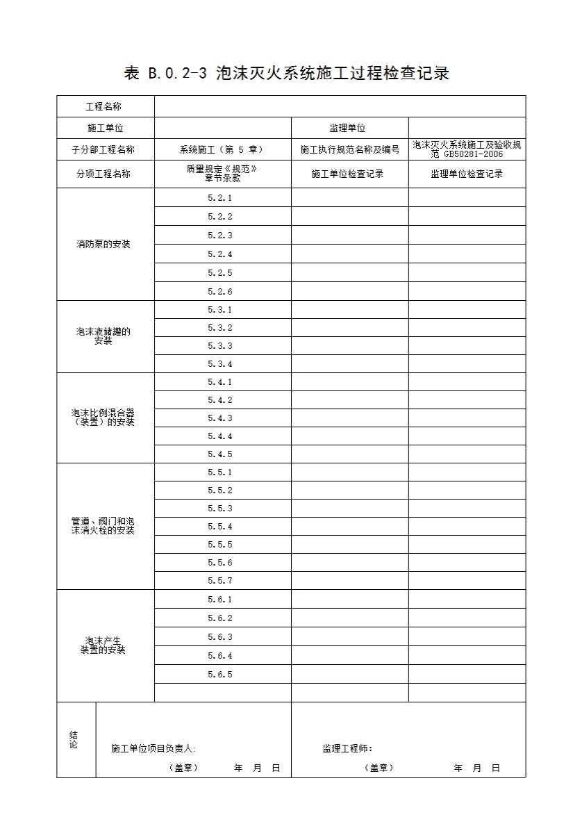 表 B.0.2-3 泡沫灭火系统施工过程检查记录