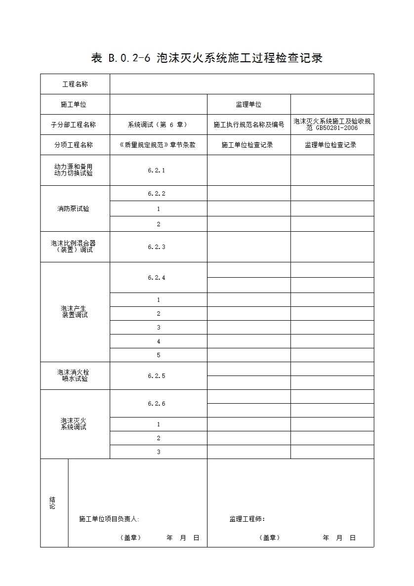 表格名称:表 B.0.2-6 泡沫灭火系统施工过程检查记录