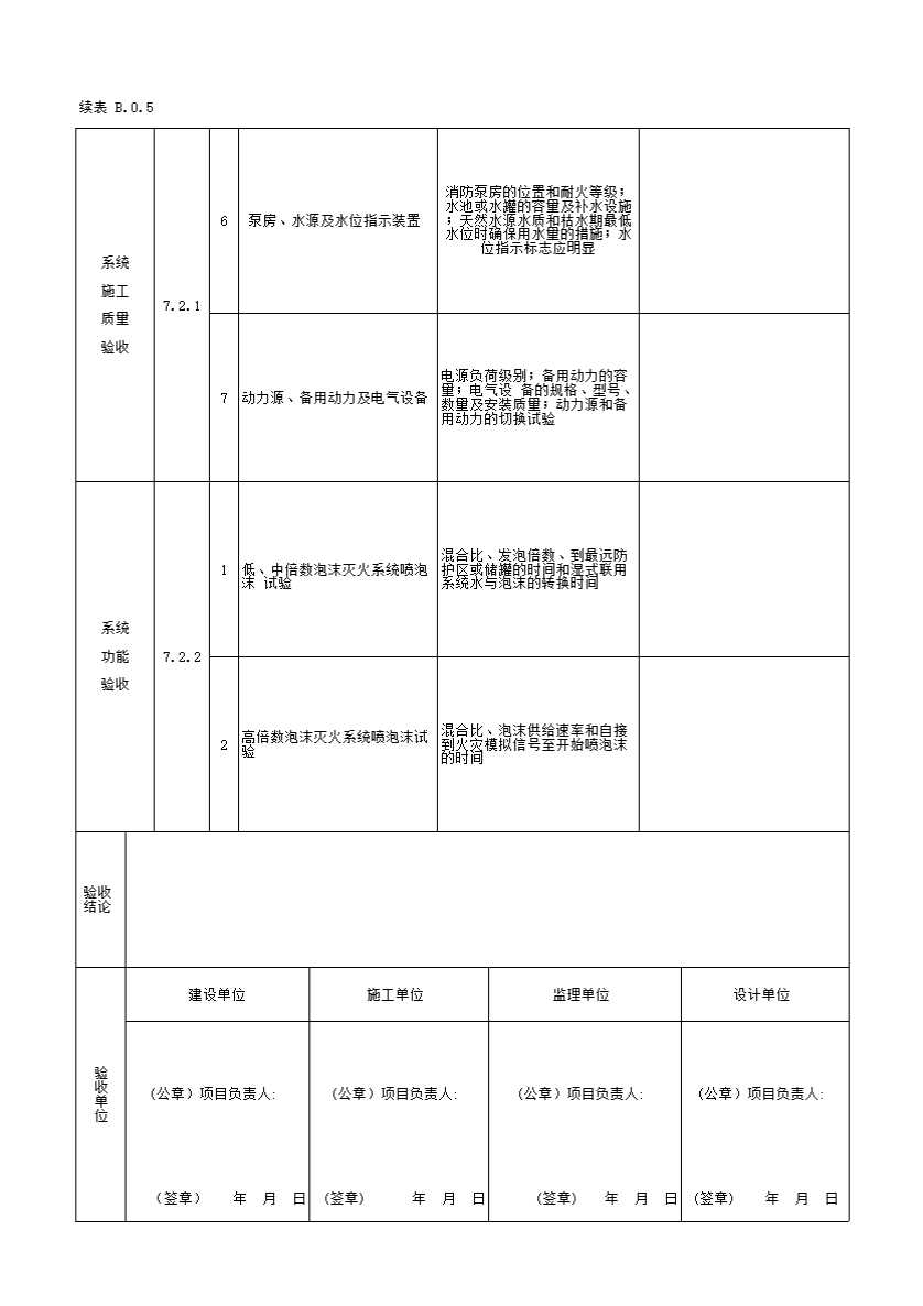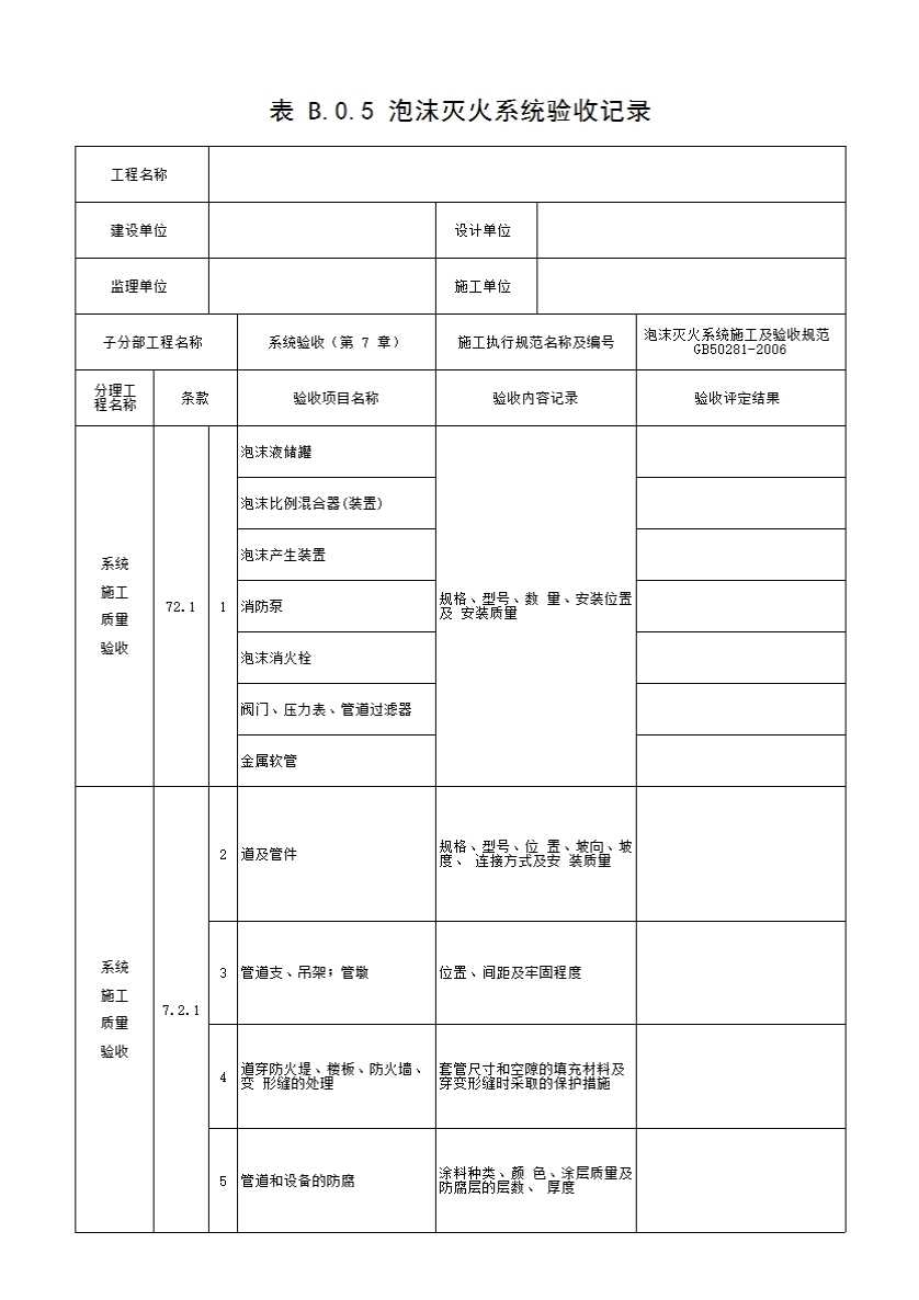 表格名称:表 B.0.5 泡沫灭火系统验收记录