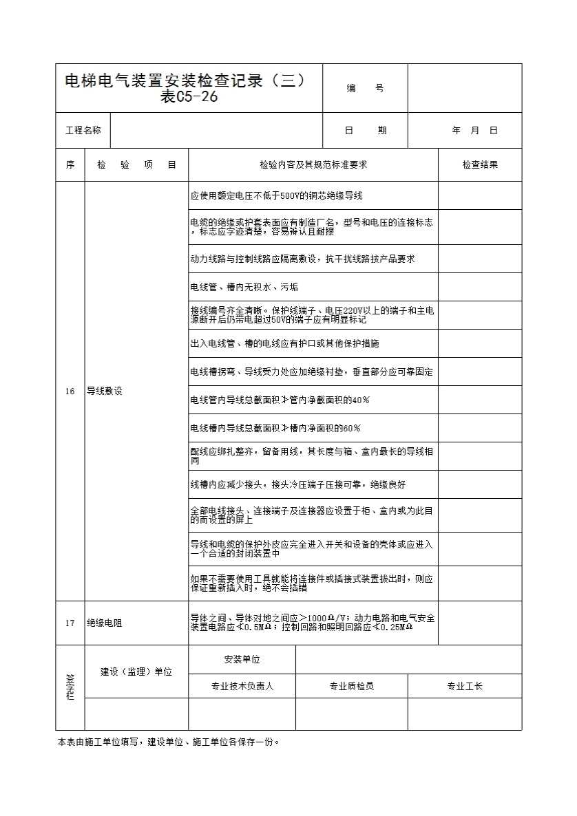 表格名称:C5-26 电梯电气装置安装检查记录(一)