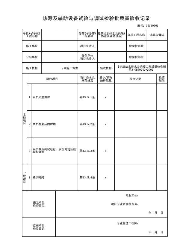 13.5.3 锅炉在烘炉、煮炉合格后,应进行48h 的带负荷连续试运行,同时应进行安全阀的热状态定压检验和调整。