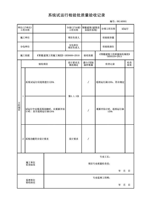 08140901 系统试运行检验批质量验收记录