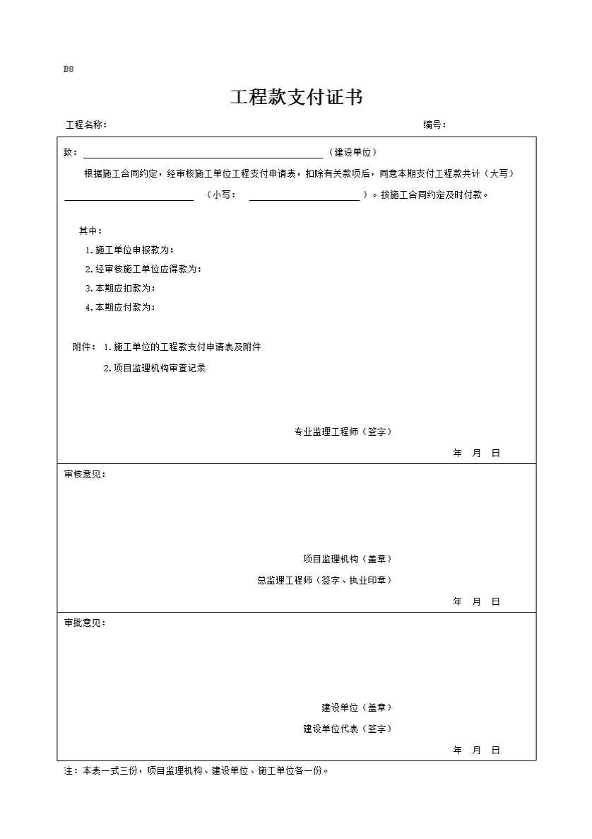 B8工程款支付证书