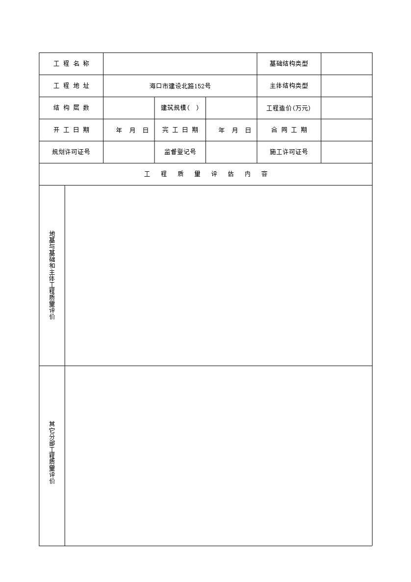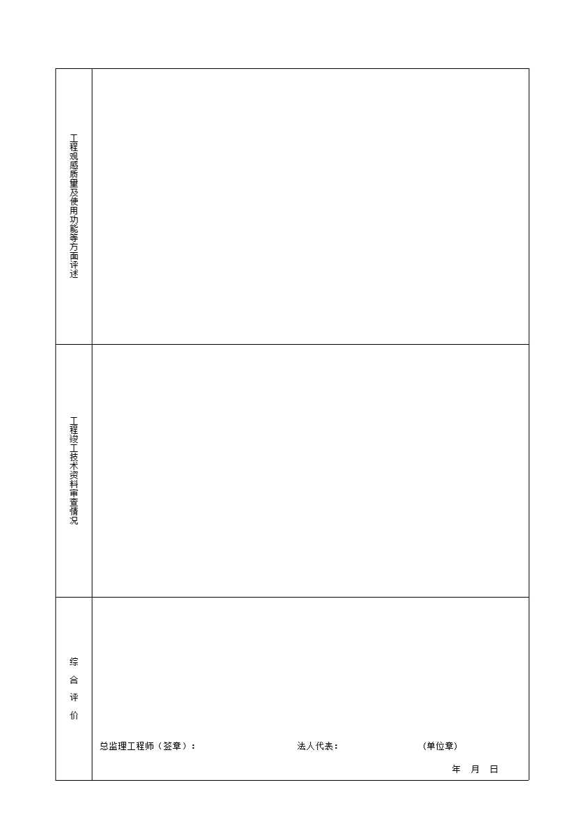 表格名称:监理单位工程监理评估报告