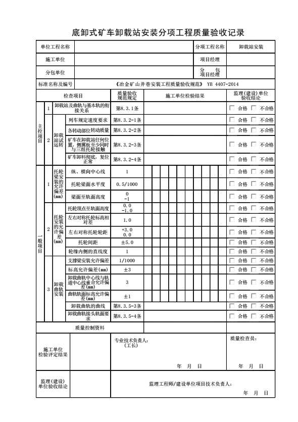 表格名称:底卸式矿车卸载站安装分项工程质量验收记录