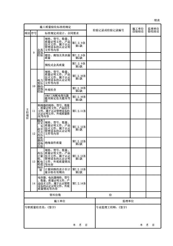 表格名称:09040301 35kV及以下架空电力线路进场检验检验批质量验收记录