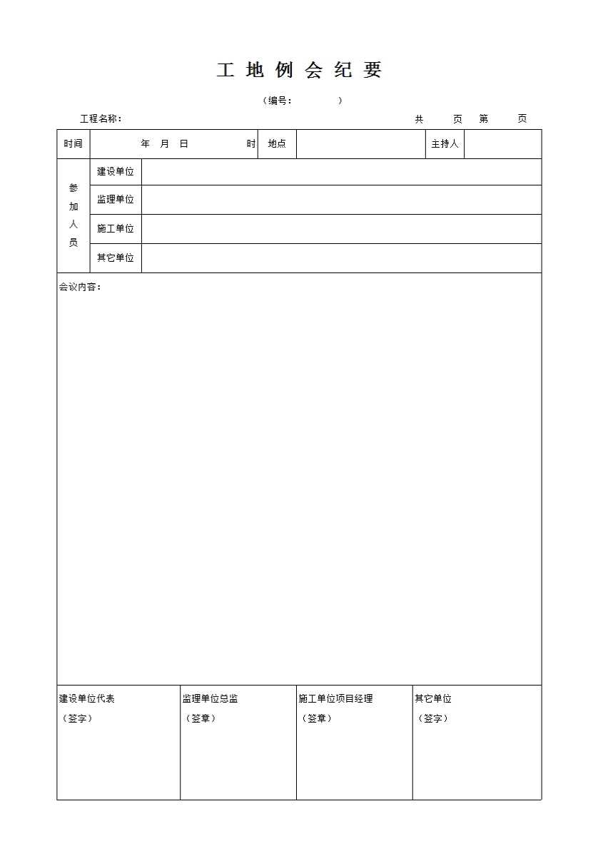 表格名称:工程会议纪要