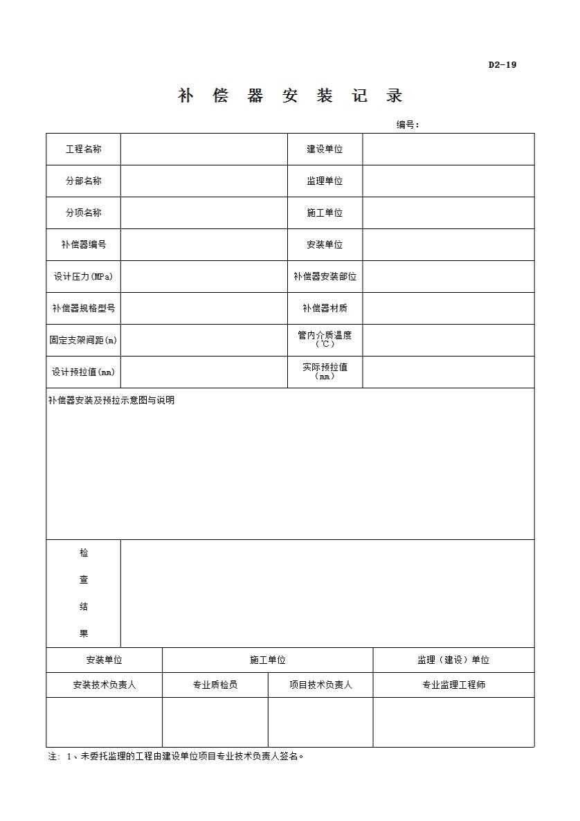 表格名称:补偿器安装记录