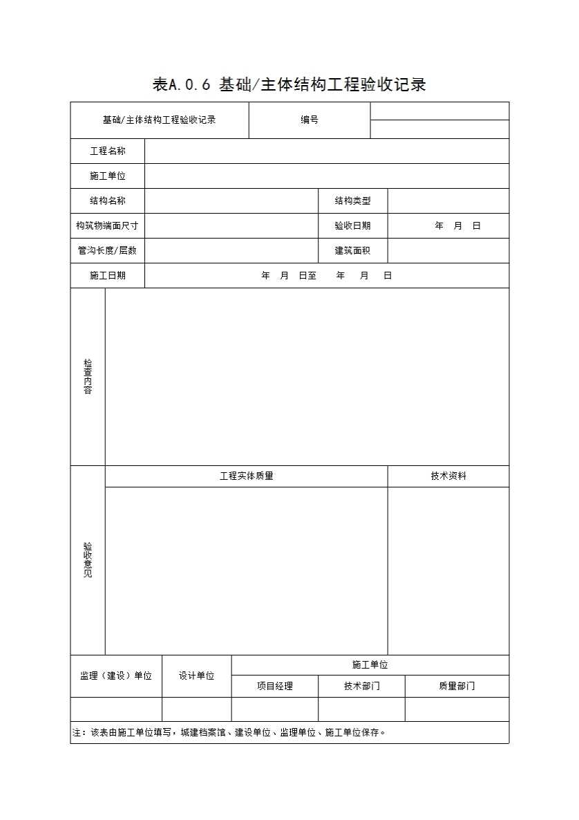 表格名称:表A.0.6 基础/主体结构工程验收记录