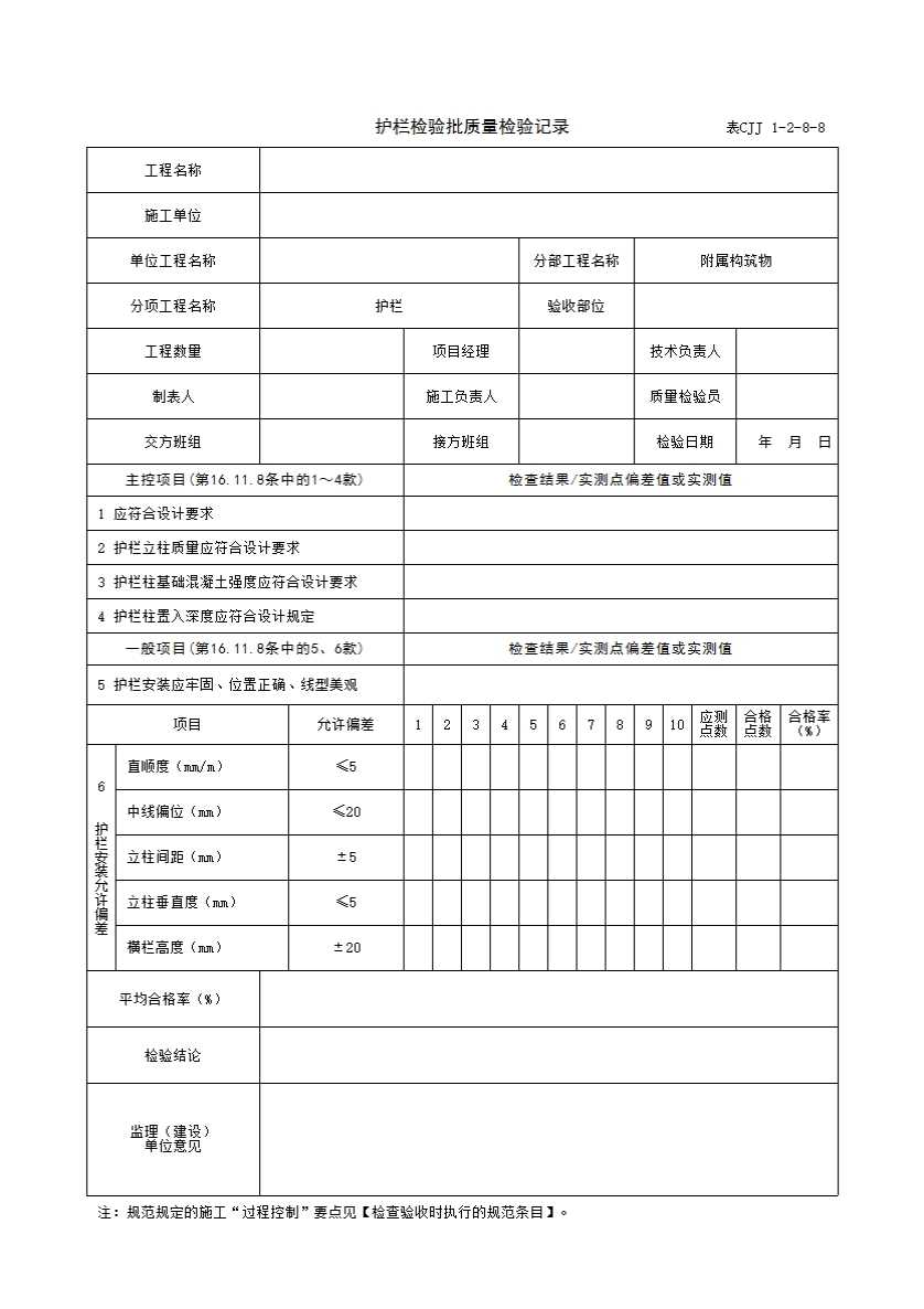 表CJJ 1-2-8-8 护栏检验批质量检验记录