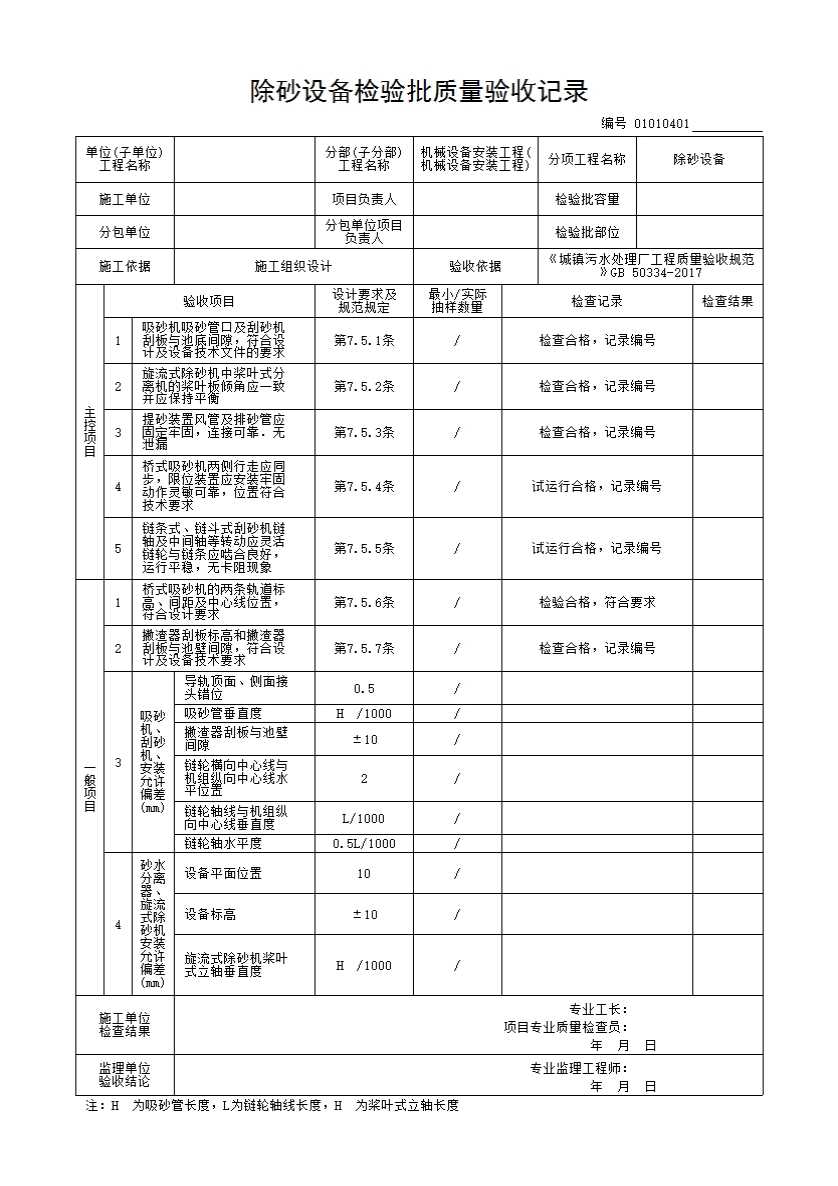 7.5.1 吸砂机吸砂管口及刮砂机刮板与池底间隙应符合设计及设备技术文件的要求。