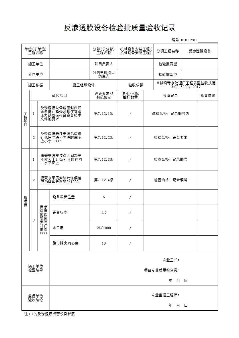 7.12.1 反渗透膜设备应密封良好、无渗漏,膜壳及相连管道压力试验应符合设备技术文件的要求。