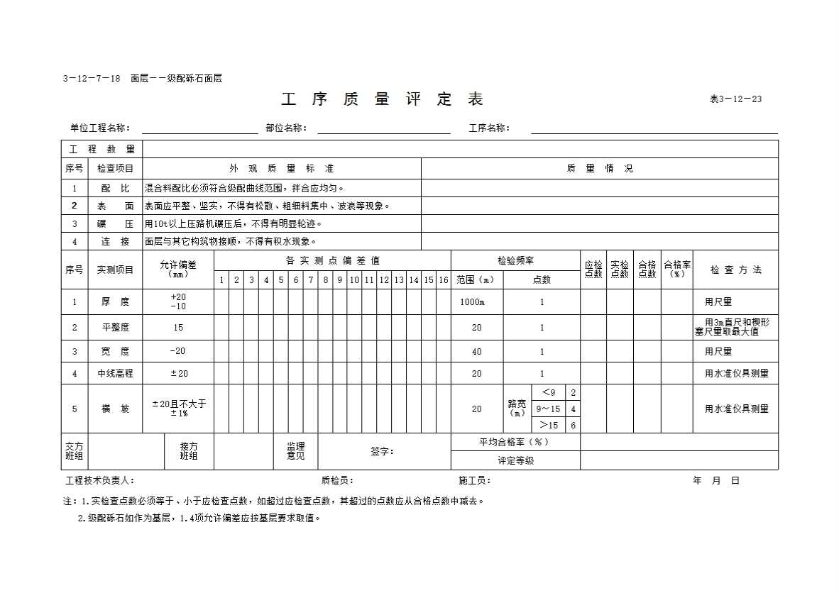 表格名称:工序质量评定表(面层—级配砾石面层)