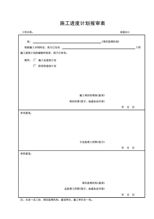 表格名称:琼监B13 施工进度计划报审表