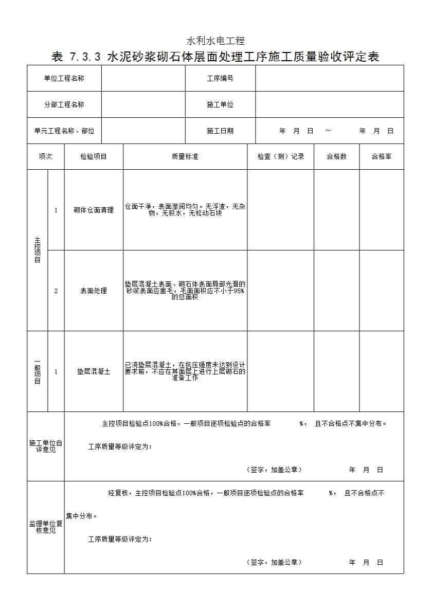 表格名称:表 7.3.3 水泥砂浆砌石体层面处理工序施工质量验收评定表