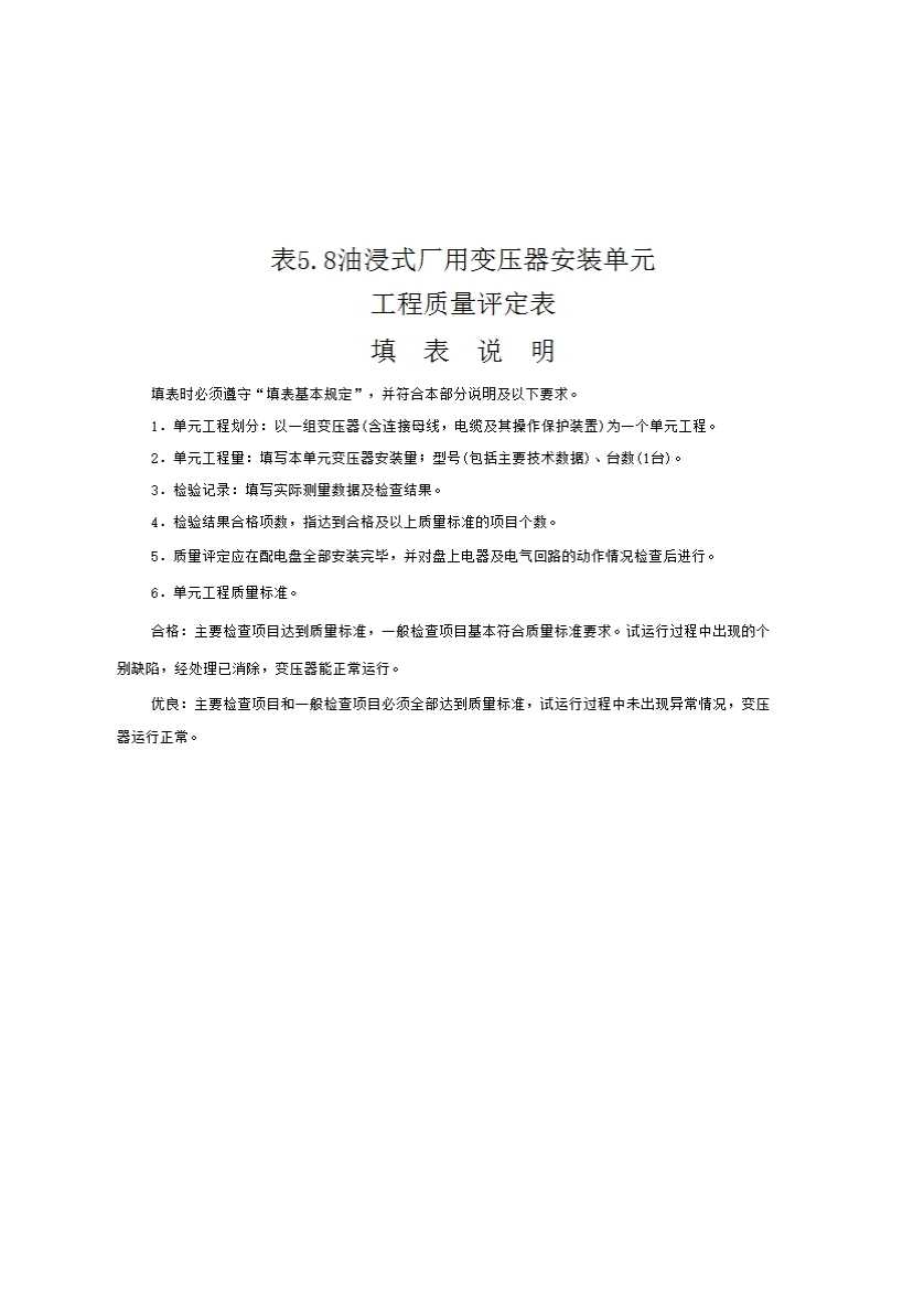 表格名称:表5.8 油浸式厂用变压器安装单元工程质量评定表