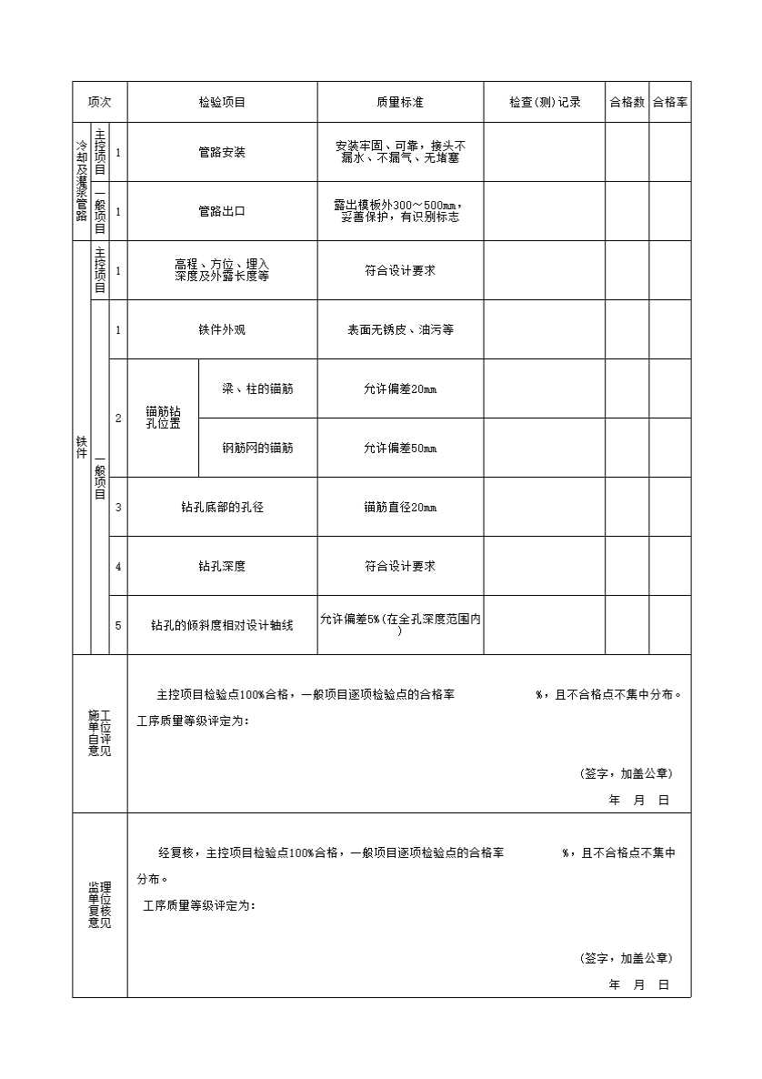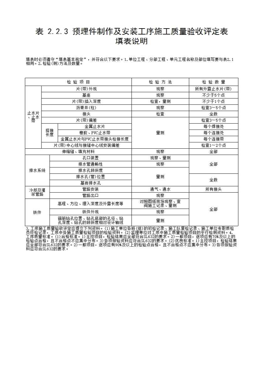 填表时必须遵守“填表基本规定”,并符合以下要求。1.单位工程、分部工程、单元工程名称及部位填写要与表2.1相同。2.检验(测)方法及数量。