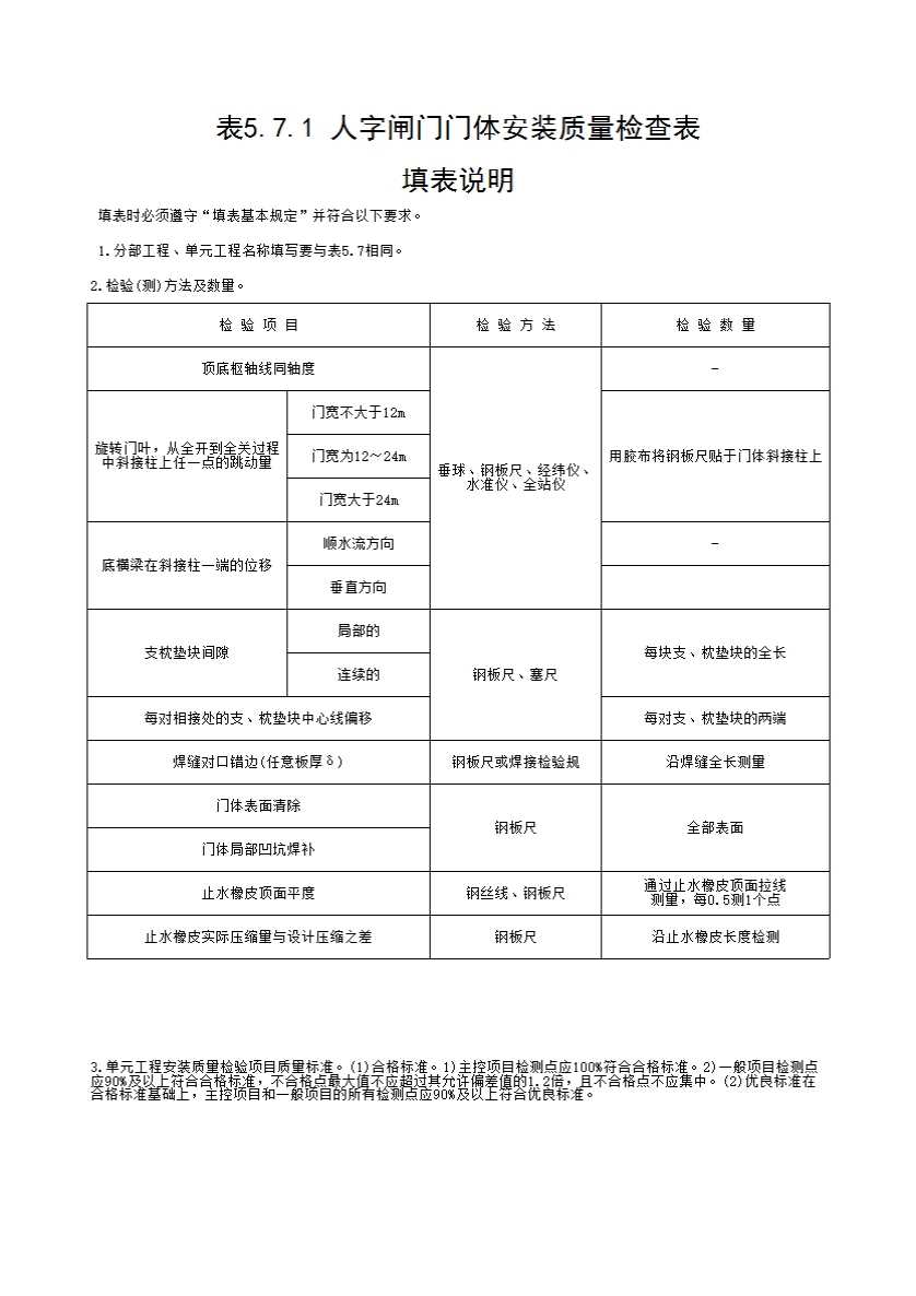 1.分部工程、单元工程名称填写要与表5.7相同。