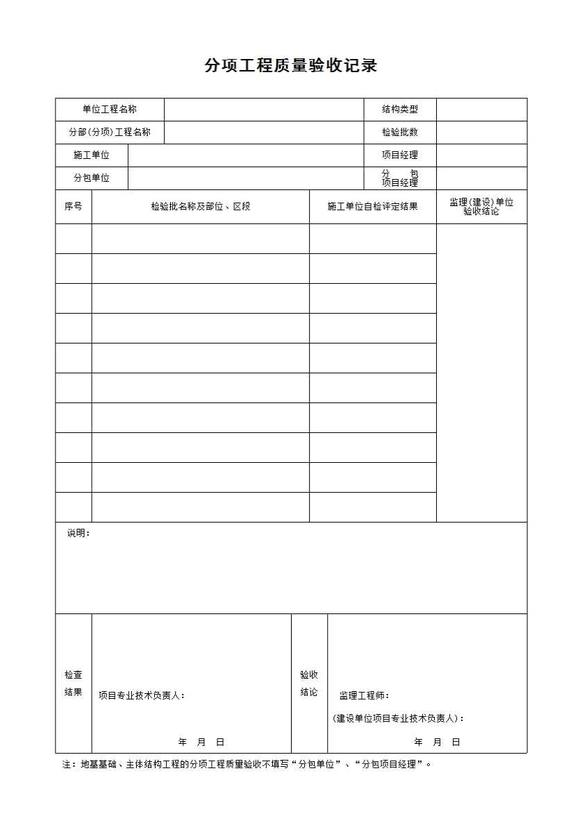 表格名称:C7-3 分项工程质量验收记录