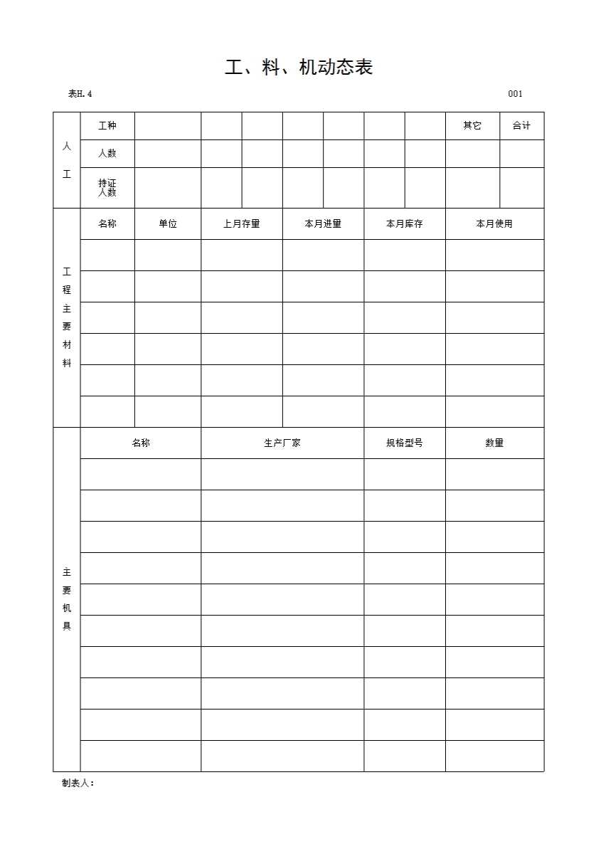 表格名称:工、料、机动态表