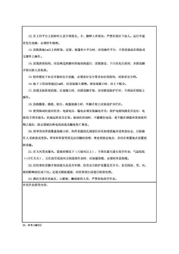 表格名称:混凝土浇捣作业安全技术交底(自拌混凝土)