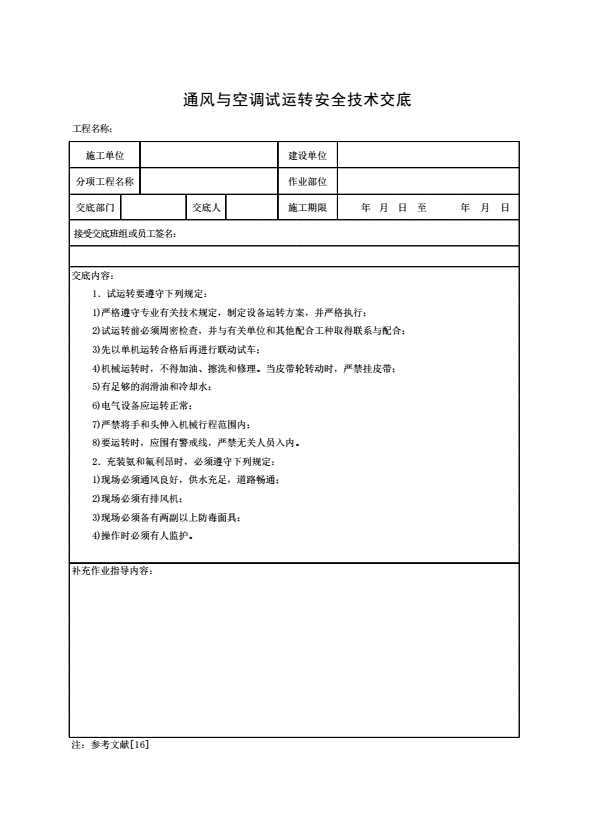 表格名称:通风与空调试运转安全技术交底