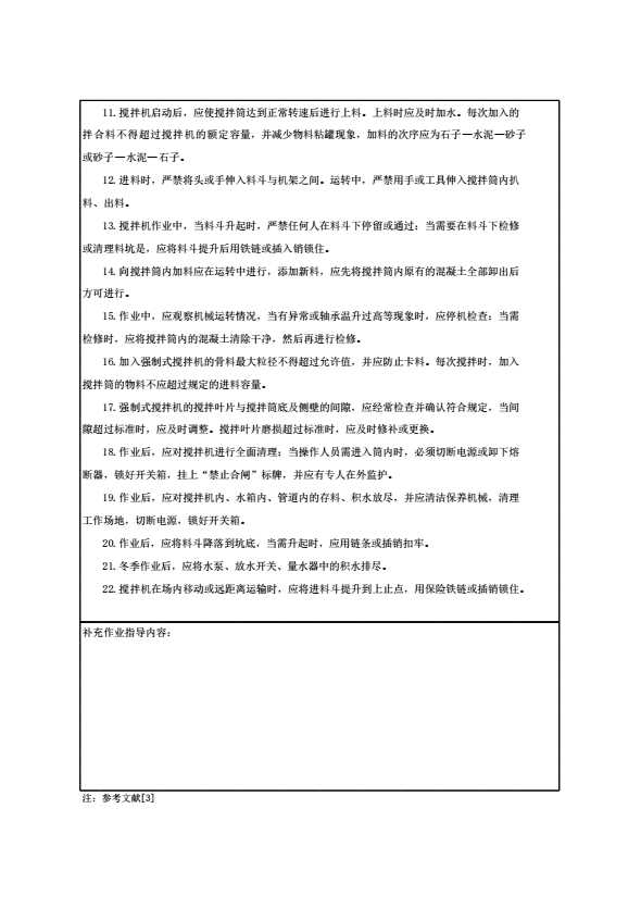 表格名称:混凝土搅拌机安全操作规程技术交底