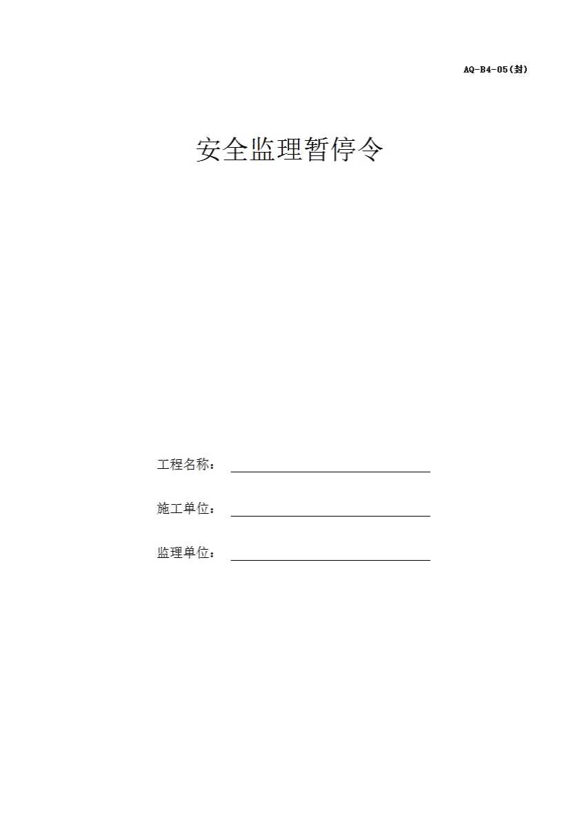 表格名称:表AQ-B4-05(封) 安全监理暂停令