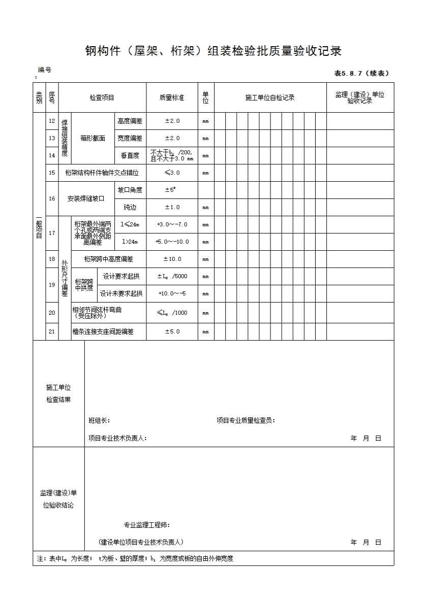 表格名称:5.8.7 钢构件(屋架、桁架)组装检验批质量验收记录